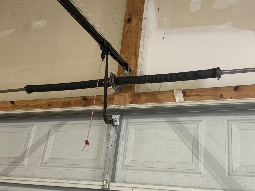 Extension springs run along the sides of your door and stretch like a rubber band. They’re less common in newer homes, but we still see plenty of them around the area. When these break, your door might come up crooked or not at all. Extension springs usually give you about 10,000 cycles before calling it quits.